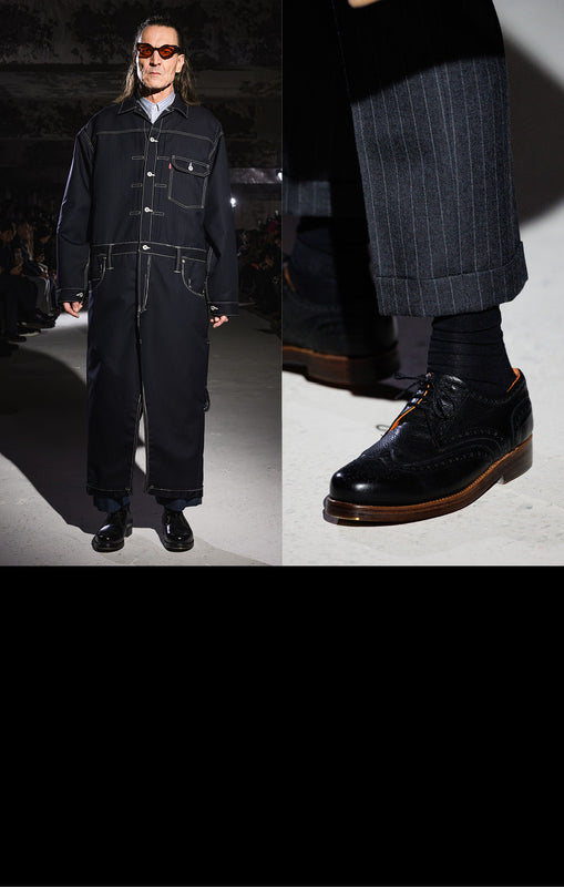 Heinrich Dinkelacker was selected as one of only seven partners to complete the 39 looks presented at the Junya Watanabe MAN Fall/Winter 2024 show in Paris. The collection presented a new and surprising image of the modern man – and our shoes made a clear statement of craftsmanship.