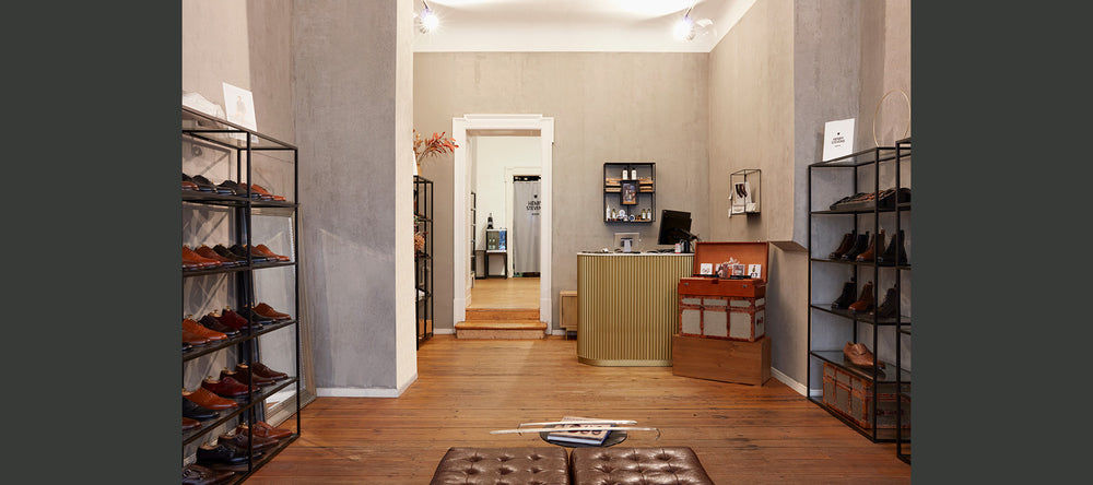 Besuchen Sie uns in der Leibnizstraße 59 in Berlin-Charlottenburg und erleben Sie wahre Schuhkultur in ihrer schönsten Form. Unser Shoepassion-Store lädt Sie ein, die ikonischen Modelle von Heinrich Dinkelacker zu entdecken – Schuhe, die Stilbewusstsein, Komfort und Nachhaltigkeit perfekt vereinen.